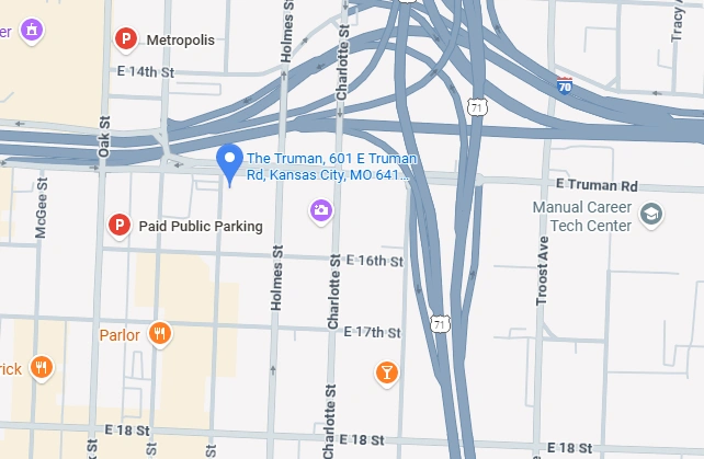 Once parked, there is a short walk to the The Truman KC entrance.  Kansas City traffic is notoriously busy around The Truman during popular events. With these in mind, please allow a little extra time to your journey.